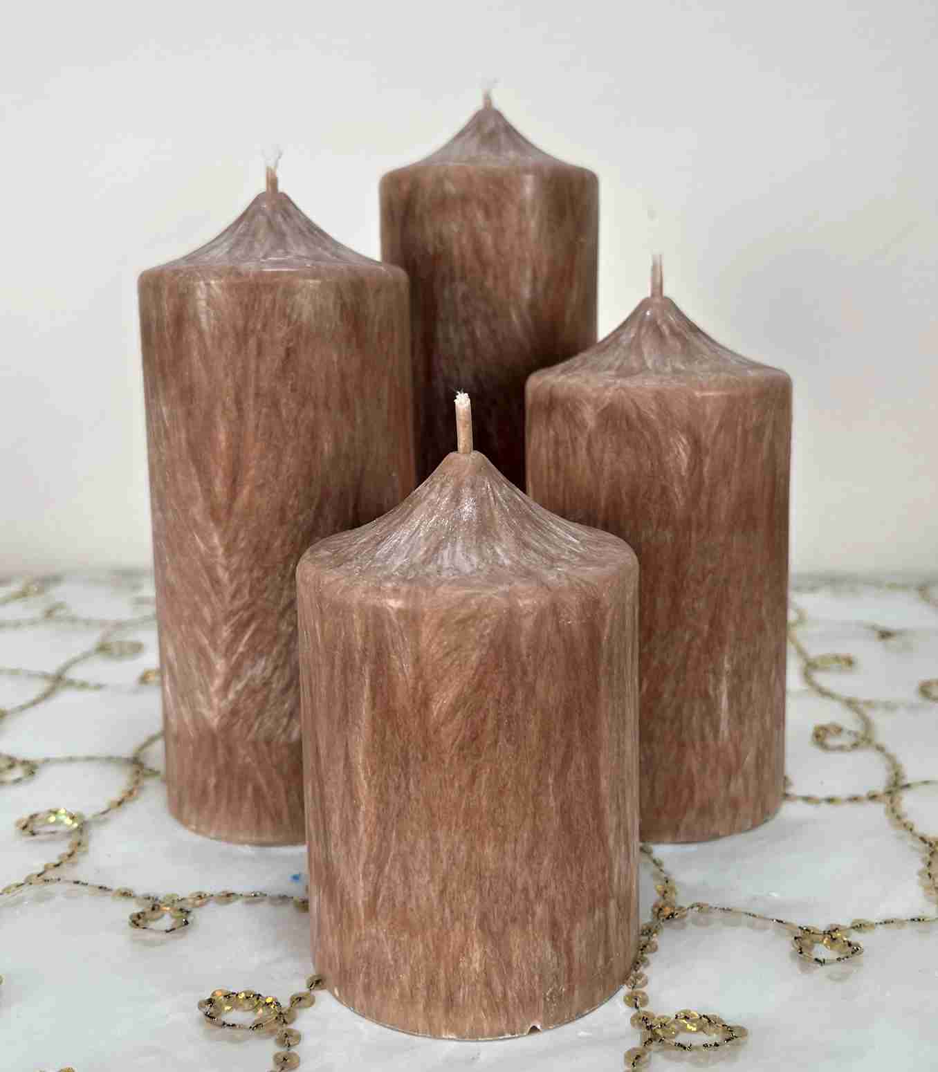 Svíčky z palmového vosku z udržitelných zdrojů, barvené specální barvou pro tyto vosky.