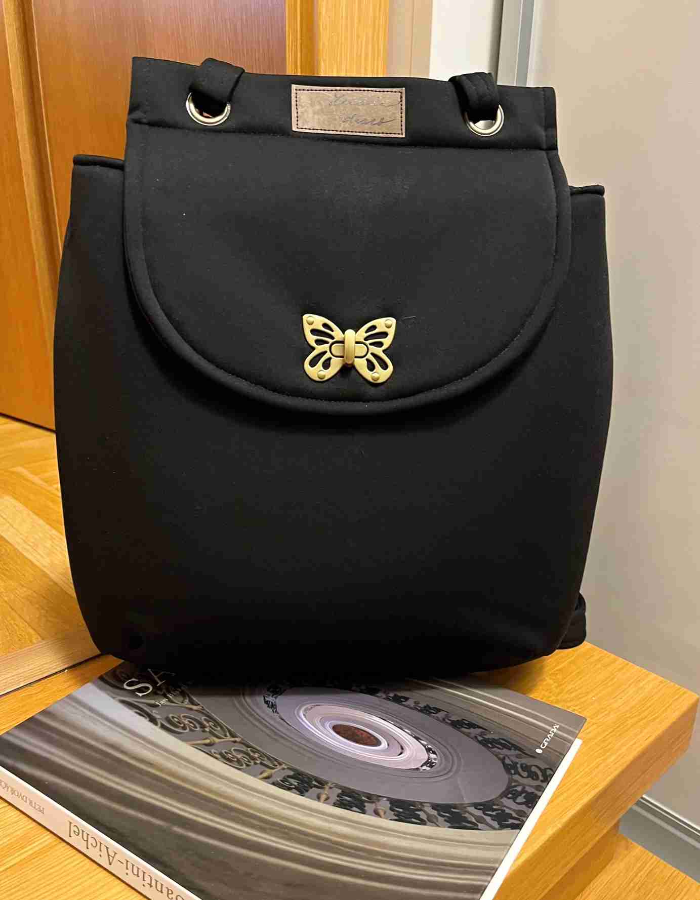 Batůžek Bonitto je dle střihu Martini Alblové MAD design, ušitý je z černého softsheelu - venkovní strana a jako vnitřní látka je použito balvněné plátno černé. Batoh je vyztužený, aby krásně držel tvar, ale měkký, velice elegantní. Popruhy jsou nastavitelné. Batoh je uzavíratelný zapínáním motýl na klopě. Vnitřní část je uzavíratelná na zip. Barva batůžku je černá. Zadní strana obsahuje kapsu na zip a vnitřní prostor je také vybaven kapsou na zip.