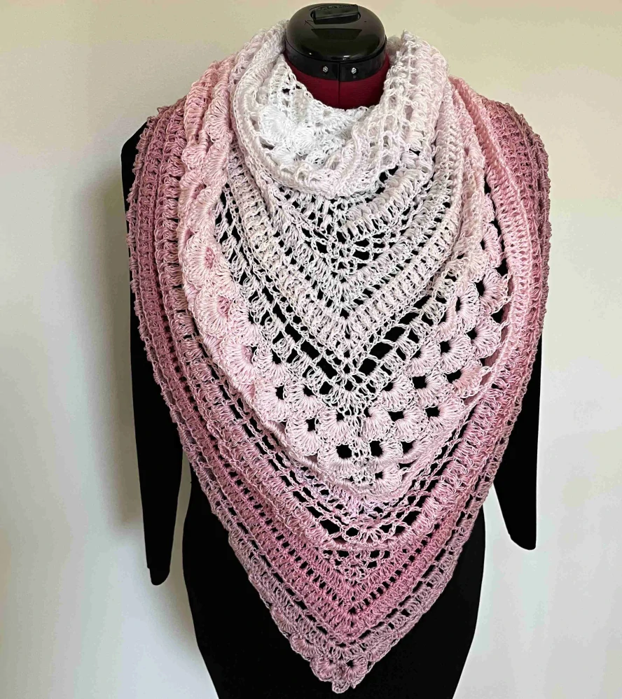 Háčkovaný šátek bílá, světlá růžová, růžová, terakota, studené odstíny