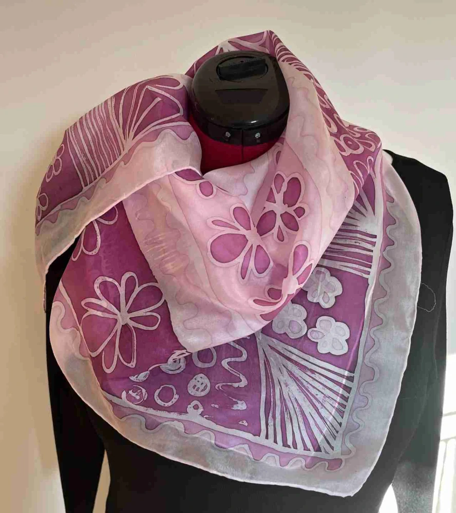 Hedvábný šátek v odstínech od růžové po purpurovou