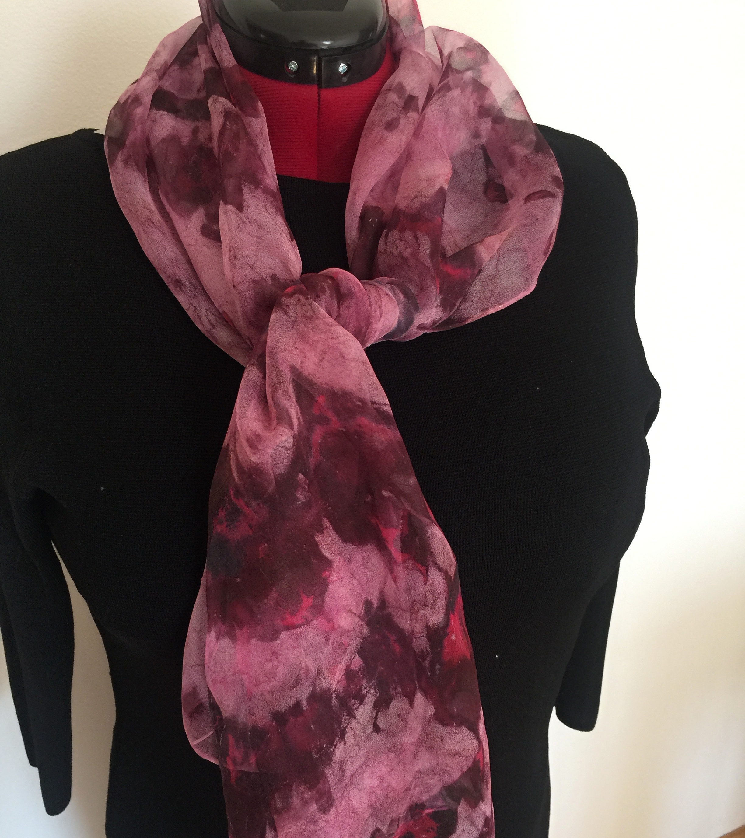 Hedvábný šál bordó batikaSkladem500 Kč/ ks