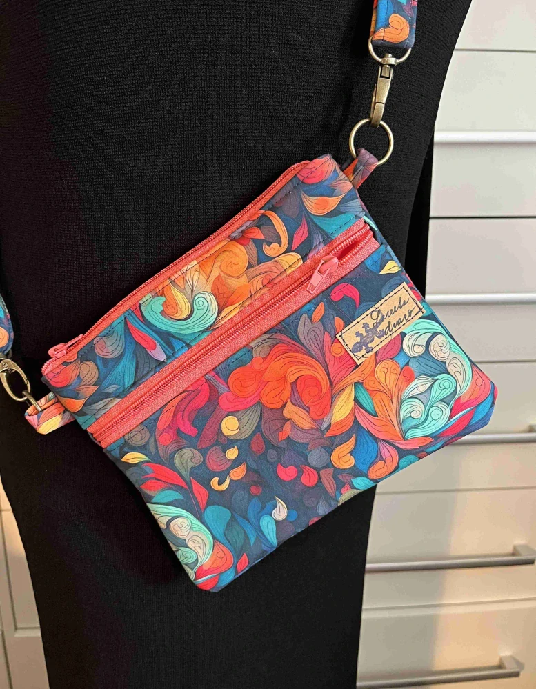 Kabelka Maličká je dle střihu Pepitty, ušitá z pevnější látky softshell a to venkovní strana. Jako vnitřní látka je použita polyesterová látka. Kabelka je vyztužená, aby krásně držela tvar, ale byla stále měkká a velice elegantní. Popruh je nastavitelný, dá se nosit na rameni nebo křížem. Maličká je uzavíratelná zipem. Na přední straně je kapsa na zip. Barva Maličké je barevný vřes - modrá, červená, oranžová. Kabelička tak akorát - akorát tak na klíče, mobil, kapesníky a lesk nebo menší peněženku.