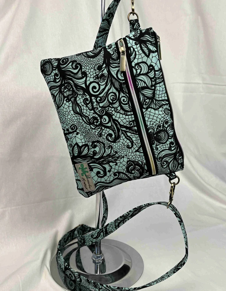 Malá kabelka crossbody "Maličká" černá krajka na mintovém podkladu