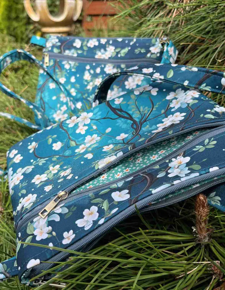 Kabelka Maličká je dle střihu Pepitty, ušitá z pevnější látky softshell a to venkovní strana. Jako vnitřní látka je použito balvněné plátno. Kabelka je vyztužená, aby krásně držela tvar, ale byla stále měkká a velice elegantní. Popruh je nastavitelný, dá se nosit na rameni nebo křížem. Maličká je uzavíratelná zipem. Na přední straně je kapsa na zip. Barva Maličké je modrá -modrozelená až petrolejová s jemnými kvítky. Kabelička tak akorát - akorát tak na klíče, mobil, kapesníky a lesk nebo menší peněženku.
