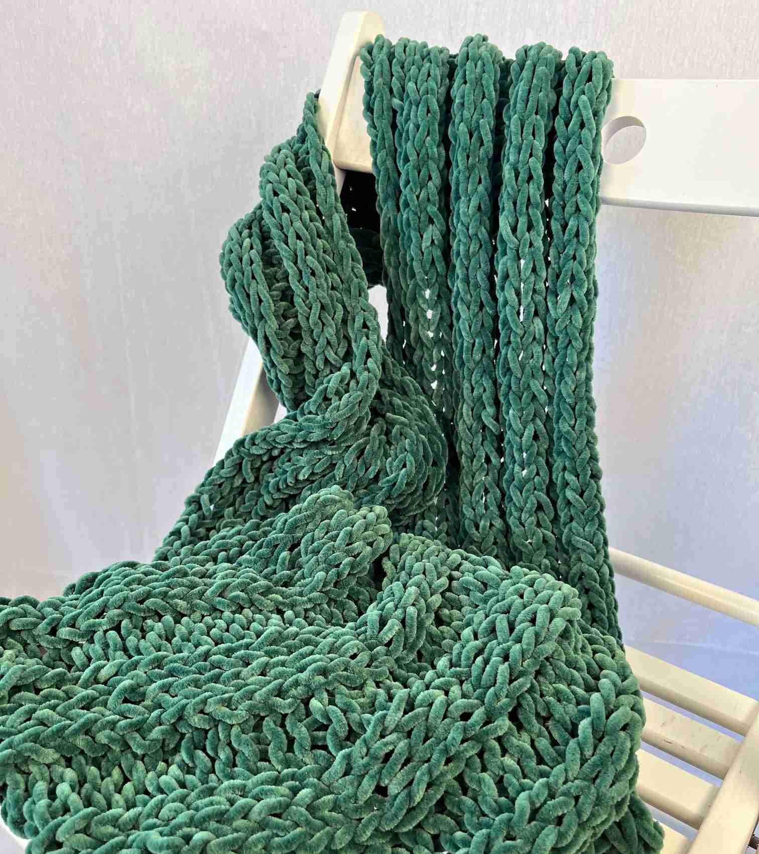 Nákrčník pletený ze silnější žinylkové vlny Dolphin baby. Barva je tmavě zelená. Šálu dvakrát pohodlně omotáte kolem krku, je velice příjemná a měkká.