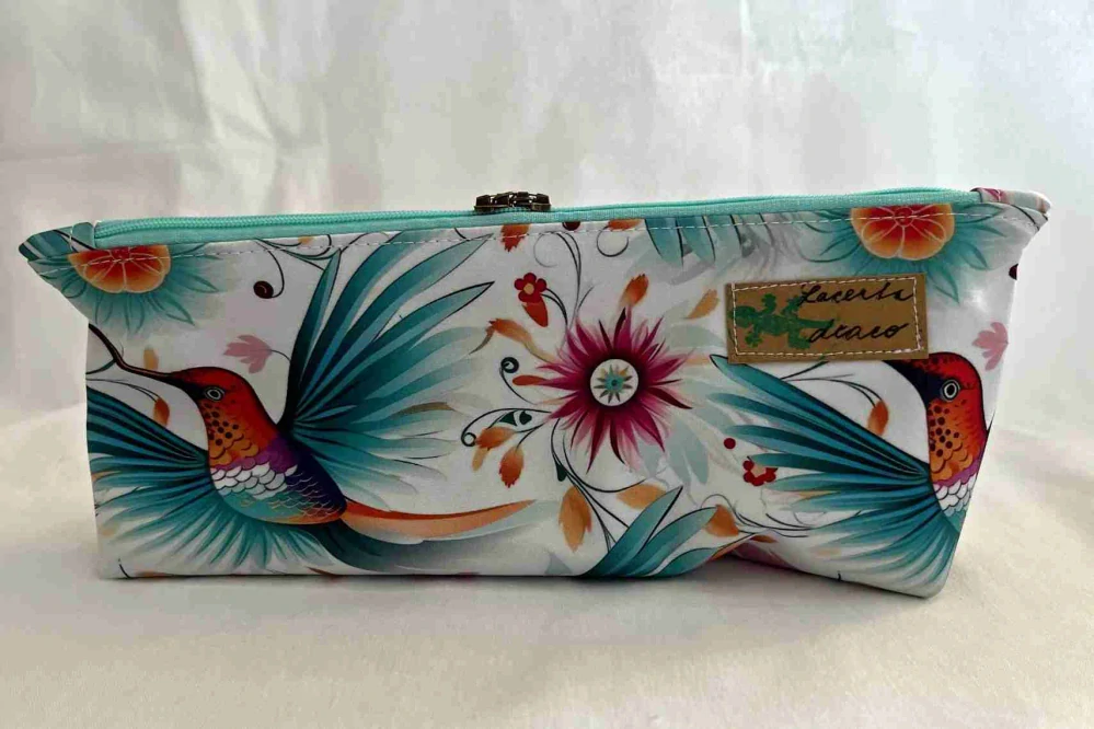 Penálek na tužky je ušitý dle střihu Pepitty, nevyztužený, pojme překvapivě velké množství tužek včetně menší myšky k počítači. Je lehký a vhodný pro větší slečny a dámy. Dá se použít i na prášky, kosmetiku dle fantazie. Barva barevní ptáčci.