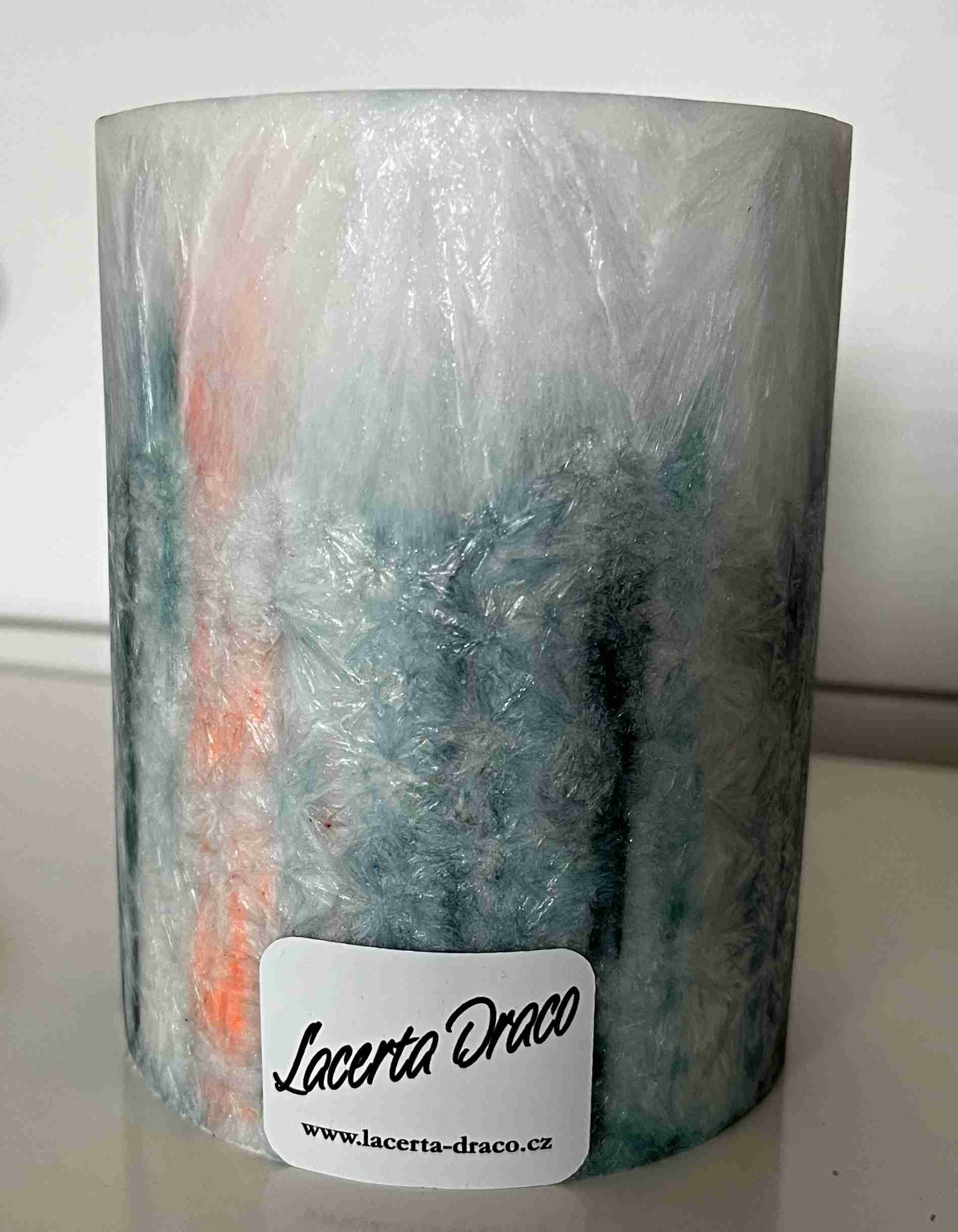 Svíčka 94x130 tmavá petrolejová s oranžovouSkladem230 Kč/ ks